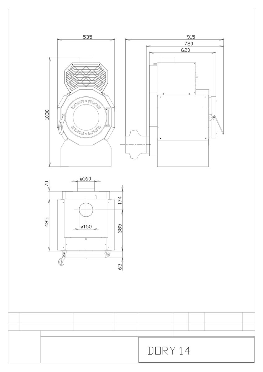 Propracovaná konstrukce kamen DORY 14 s teplovzdušným výměníkem a radiálním ventilátorem pro vyfukování horkého vzduchu zaručuje ve spojení se systémem sekundárního spalování CB velmi vysokou účinnost kamen.